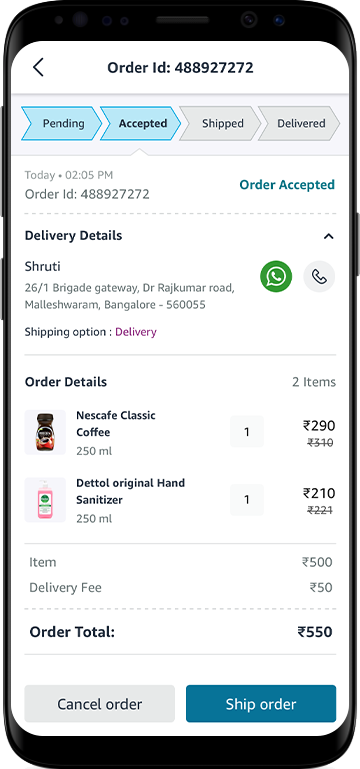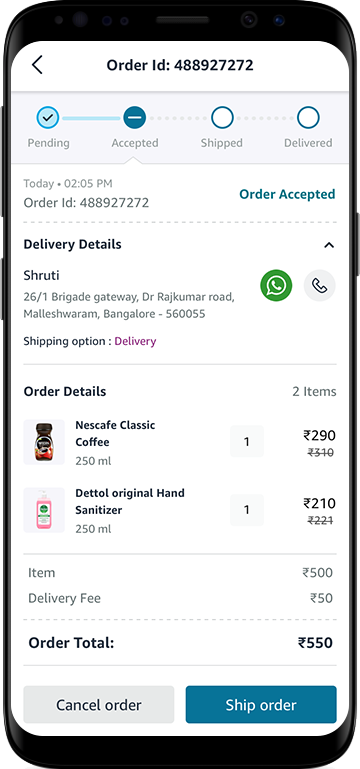 - In case of home delivery, click on the ‘Ship Order’ button to process the order.