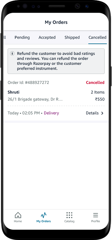 Rejecting/canceling orders impacts the customer’s trust, and you may lose new customers. Therefore, you should not reject or cancel orders unless it is absolutely unavoidable.